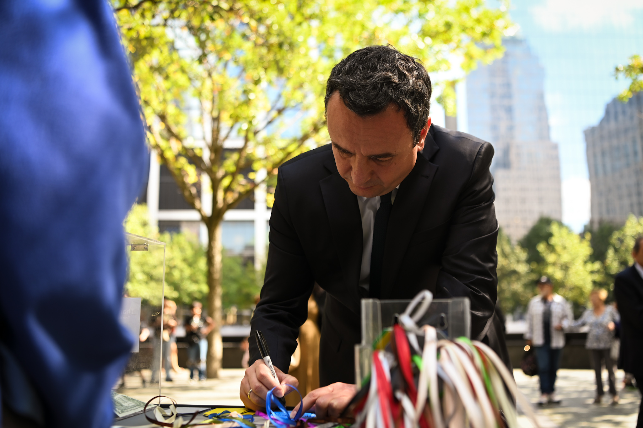 Kryeministri në detyrë i Republikës së Kosovës, Albin Kurti, në kuadër të vizitës së tij në Shtetet e Bashkuara të Amerikës, mori pjesë në përkujtimin e 11 Shtatorit, një ditë që shënoi historinë moderne dhe që mbetet e ngulitur në kujtesën e njerëzimit. Vizita e tij në Memorialin Kombëtar të 11 Shtatorit ishte një akt respekti dhe solidariteti me popullin amerikan, duke nënvizuar se kujtimi i kësaj ngjarjeje të dhimbshme është njëkohësisht dëshmi e qëndrueshmërisë, lirisë dhe bashkimit.