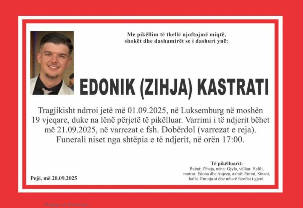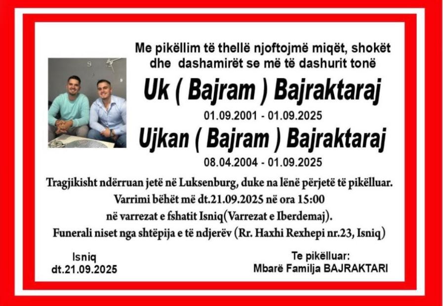 Edonik Kastrati, dhe vëllezërit Uk e Ujkan Bajraktaraj, tre të rinjtë që mbetën të vdekur si pasojë e një aksidenti tragjik në Luksemburg më 1 shtator të këtij viti, do të varrosen sot.