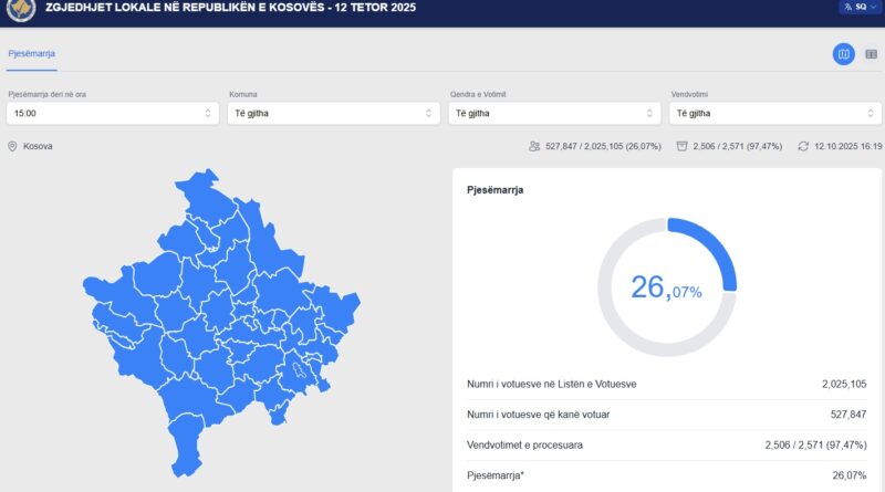 KQZ përditëson të dhënat – Deri në orën 15:00 kanë votuar 22.05% e qytetarëve