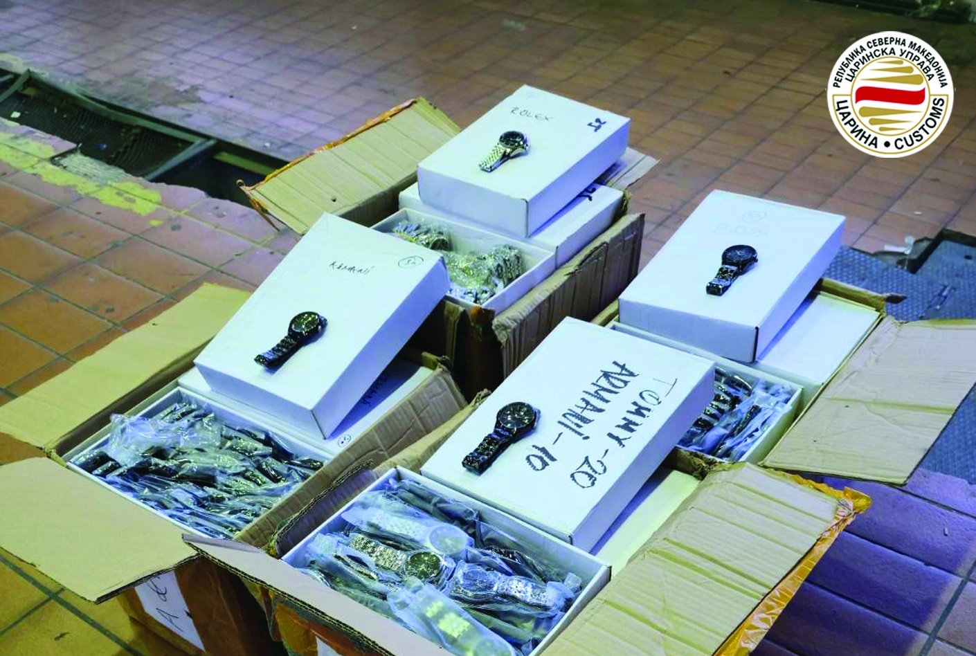 “Gjatë një kontrolli të mallrave të deklaruara për tranzit në pikën kufitare Bogorodicë, u sekuestruan gjithsej 1,158 orë dore me markat e mbrojtura tregtare “Rolex”, “Boss”, “Armani” dhe “Tommy Hilfiger”. Rasti u zbulua nga një ekip doganor mobil, i cili, për shkak të dyshimit, kreu një kontroll të detajuar, duke gjetur orë vlera e të cilave, deklaruar sipas faturës nga një kompani kineze ishte 60,852 denarë. Për shkak të dyshimit të bazuar për shkelje të të drejtës së pronësisë intelektuale, mallrat u bllokuan dhe u nis procedura për të përcaktuar origjinalitetin e produkteve”, thonë nga Drejtoria e Doganave.