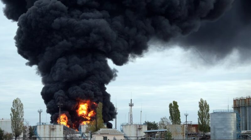 Një nga objektet e goditura ishte uzina e përpunimit të gazit Shebelinka në rajonin e Kharkiv, ku kolona të mëdha tymi të zi dhe zjarre që digjeshin ashpër mund të shiheshin pas sulmit.