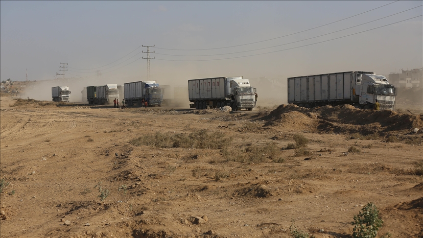Karvanet me ndihma vazhdojnë të hyjnë në Rripin e Gazës përmes kalimit “Kissufim” pas armëpushimit midis Izraelit dhe Hamasit, raporton Anadolu.