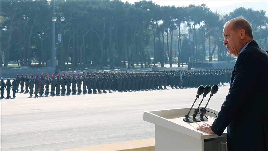 Në fjalimin e tij gjatë një ceremonie në Baku për të shënuar përvjetorin e pestë të Ditës së Fitores së Azerbajxhanit, presidenti Erdogan e sheh fitoren e Bakut jo si një fund, por si një moment historik në rrugën drejt paqes së qëndrueshme në Kaukaz.