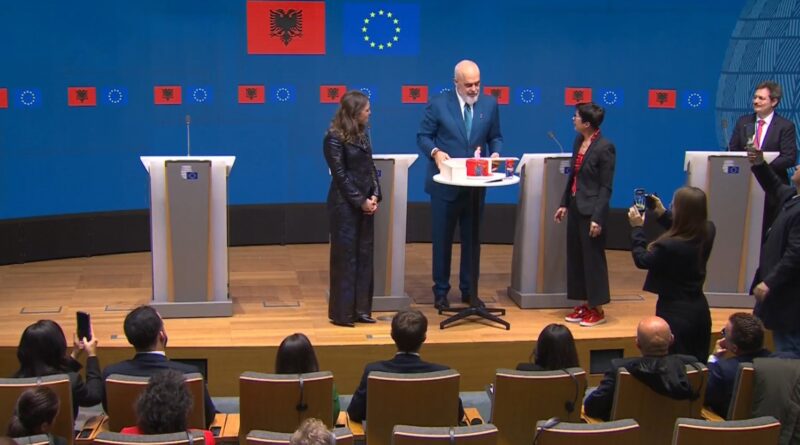 Hapen të gjithë kapitujt me BE, Rama dhe Kos presin tortën me flamurin e Shqipërisë