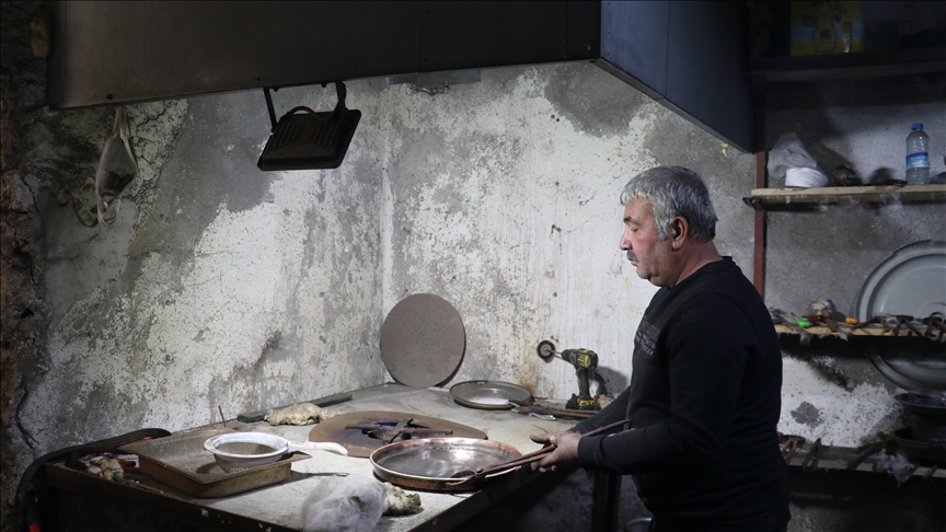 Mjeshtri, i cili krijon çajnikë, tepsi, filxhanë dhe gota prej bakri në dyqan, tha për Anadolu se filloi punimin e kallajit falë një miku.