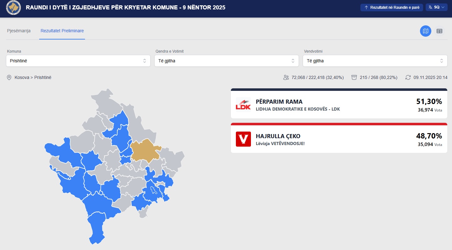 Rezultatin e komunave se kush ku po prinë mund t’i ndiqni në linkun që po e përditëson KQZ-ja: