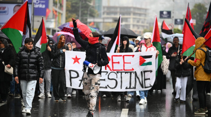 Iniciativa “Të gjithë për Palestinën” sot mbajti një marsh protestues në Shkup, në shenjë solidariteti me popullin palestinez dhe dënimi të okupimit dhe gjenocidit.