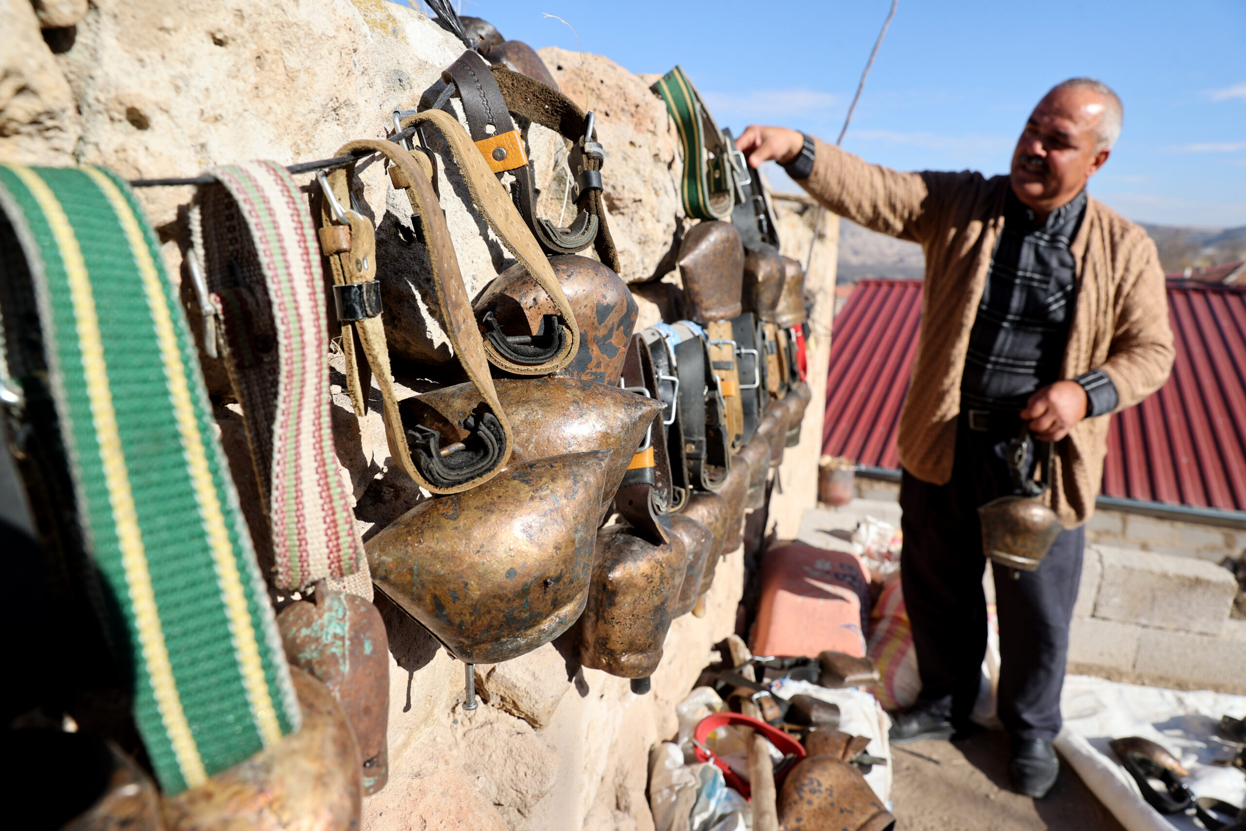 Omer Ozdemir, një banor 56-vjeçar i fshatit Sahinefendi në Nevsehir të Turqisë, mbledh kambana delesh që filloi t’i mblidhte në rininë e tij, raporton Anadolu.