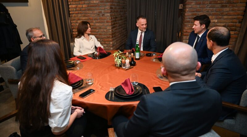 Nesër Spiropali pritet të zhvillojë gjithashtu takim edhe me kryetarët e koalicionit qeveritar VLEN, Izet Mexhiti, Bilall Kasami dhe Bekim Sali. Ajo do të pritet edhe nga presidentja e Republikës së Maqedonisë së Veriut, Gordana Siljanovska-Davkova, kryeministri Hristijan Mickoski, kryetari i Parlamentit Afrim Gashi dhe ministri për Punë dhe Tregti të Jashtme, Timço Mucunski.