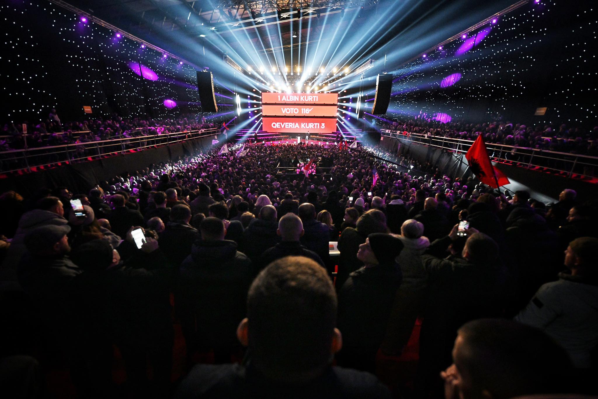 Tubimi përmbyllës po zhvillohet në një atmosferë të ngarkuar me entuziazëm, duke shënuar kulmin e fushatës së Lëvizjes VETËVENDOSJE! dhe duke përcjellë mesazhe të qarta për të ardhmen politike të vendit./albazone.mk