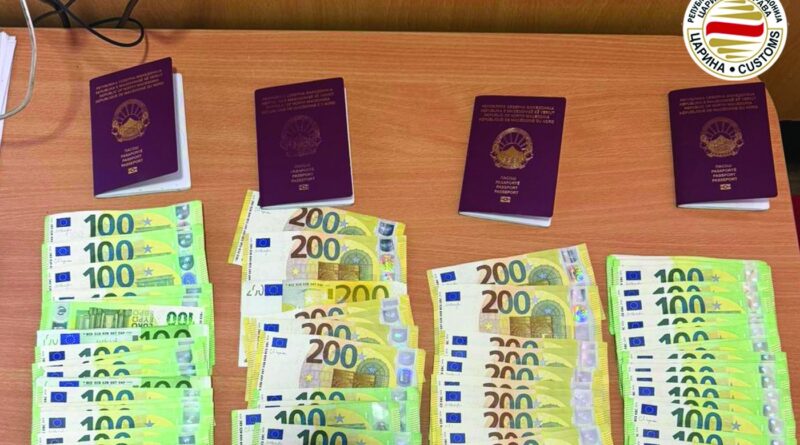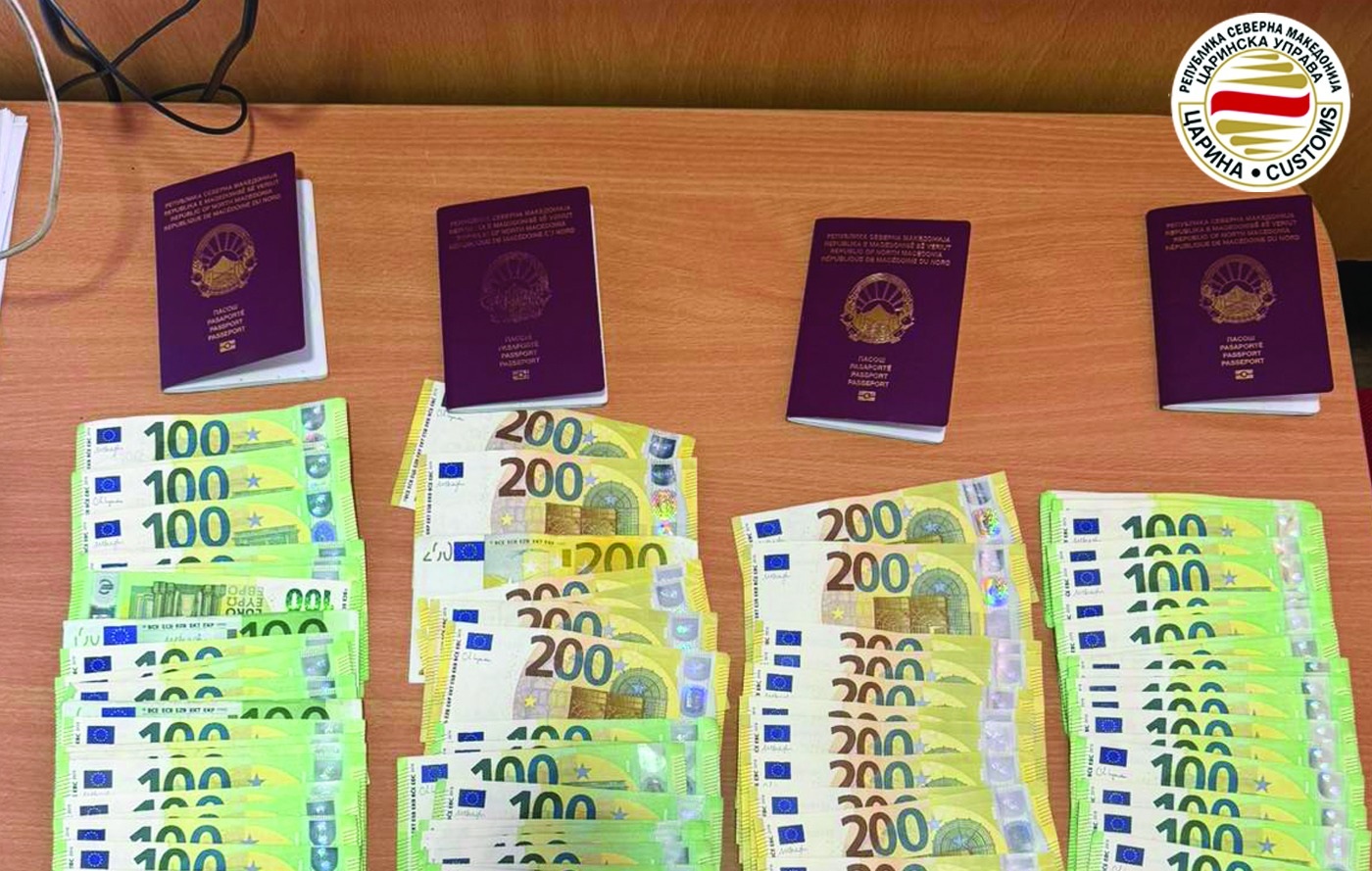 Në dalje nga vendi në pikën kufitare “Bogorodicë”, tek katër pasagjerë u gjetën gjithsej 20.000 euro, secili me nga 5.000 euro, shuma që duhet të deklarohet dhe për të cilën nevojitet certifikatë nga banka ose këmbimore e autorizuar gjatë daljes nga vendi.