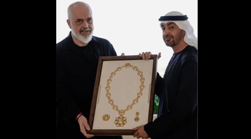 Kryeministri i Shqipërisë, Edi Rama, është nderuar me medaljen më të lartë të Emirateve të Bashkuara Arabe nga presidenti i vendit, Sheikh Mohammed bin Zayed Al-Nahyan, transmeton Anadolu.