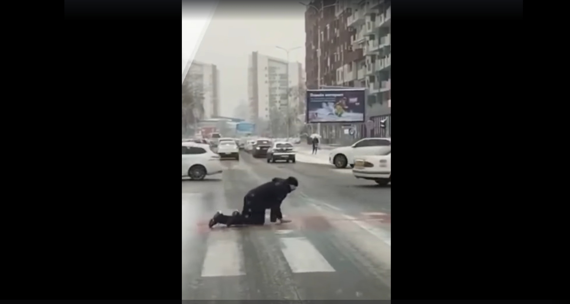 Në bulevardin “Jane Sandanski”, në komunën e Aerodromit në Shkup, një qytetar vendosi ta kalojë vendkalimin për këmbësorë duke u zvarritur.