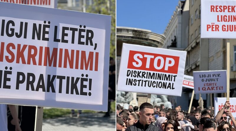 “Ligji në letër, diskriminim në praktikë”, shkruhet në një njërën prej pankartave, teksa një numër i madh kanë marrë pjesë.
