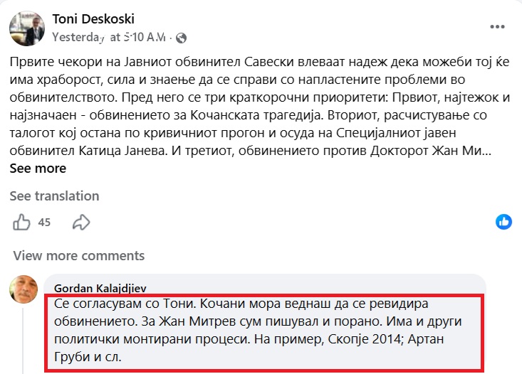 Profesori universitar dhe një nga autoritetet juridike më me kredibilitet në vend, Gordan Kalajxhiev, ka reaguar lidhur me rastet që, sipas tij, janë të montuara gjyqësore, duke theksuar se në këtë kategori hyn edhe rasti i Artan Grubit.