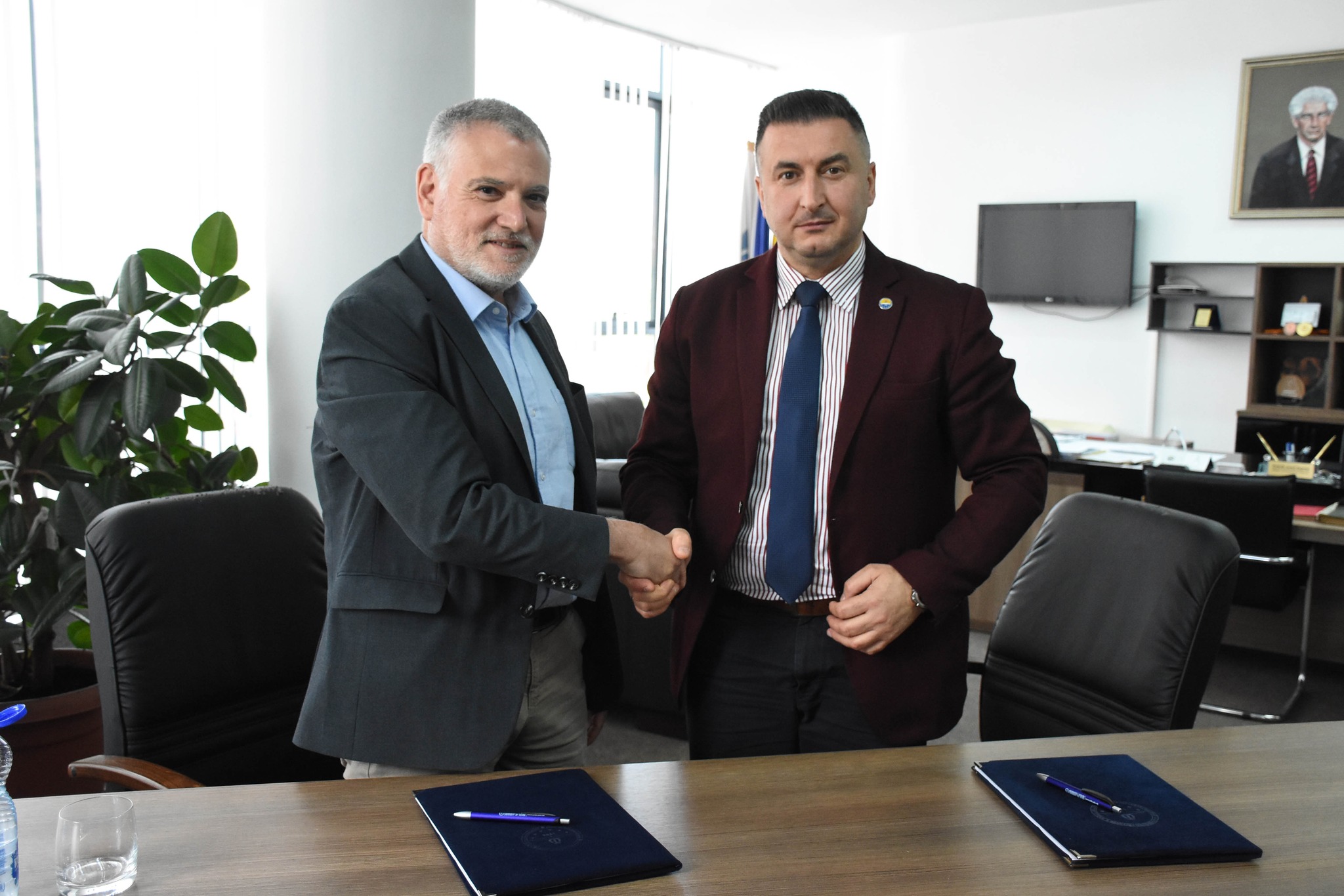 Rektori i Universitetit të Tetovës, Prof. Dr. Jusuf Zejneli, i shoqëruar nga dekani i Fakultetit të Shkencave Matematike-Natyrore (FSHMN), Prof. Dr. Florim Idrizi, prodekani për shkencë i FSHMN-së, Prof. Dr. Ahmed Jashari, shefi i programit studimor të Fizikës, Prof. Dr. Kimet Jusufi, Prof. Dr. Bashkim Ziberi dhe Mr. Sc. Nermine Muradi nga ky program studimor, si dhe udhëheqësja e Zyrës për Bashkëpunim Ndërkombëtar, Doc. Dr. Hatibe Deari Zeqiri, e pritën në takim pune kryetarin e IPPOG (International Particle Physics Outreach Group), Dr. Steven Goldfarb, profesor në Universitetin e Melburnit, shkencëtar në CERN dhe në eksperimentin ATLAS, i cili është i angazhuar në promovimin e shkencës dhe të fizikës së grimcave.