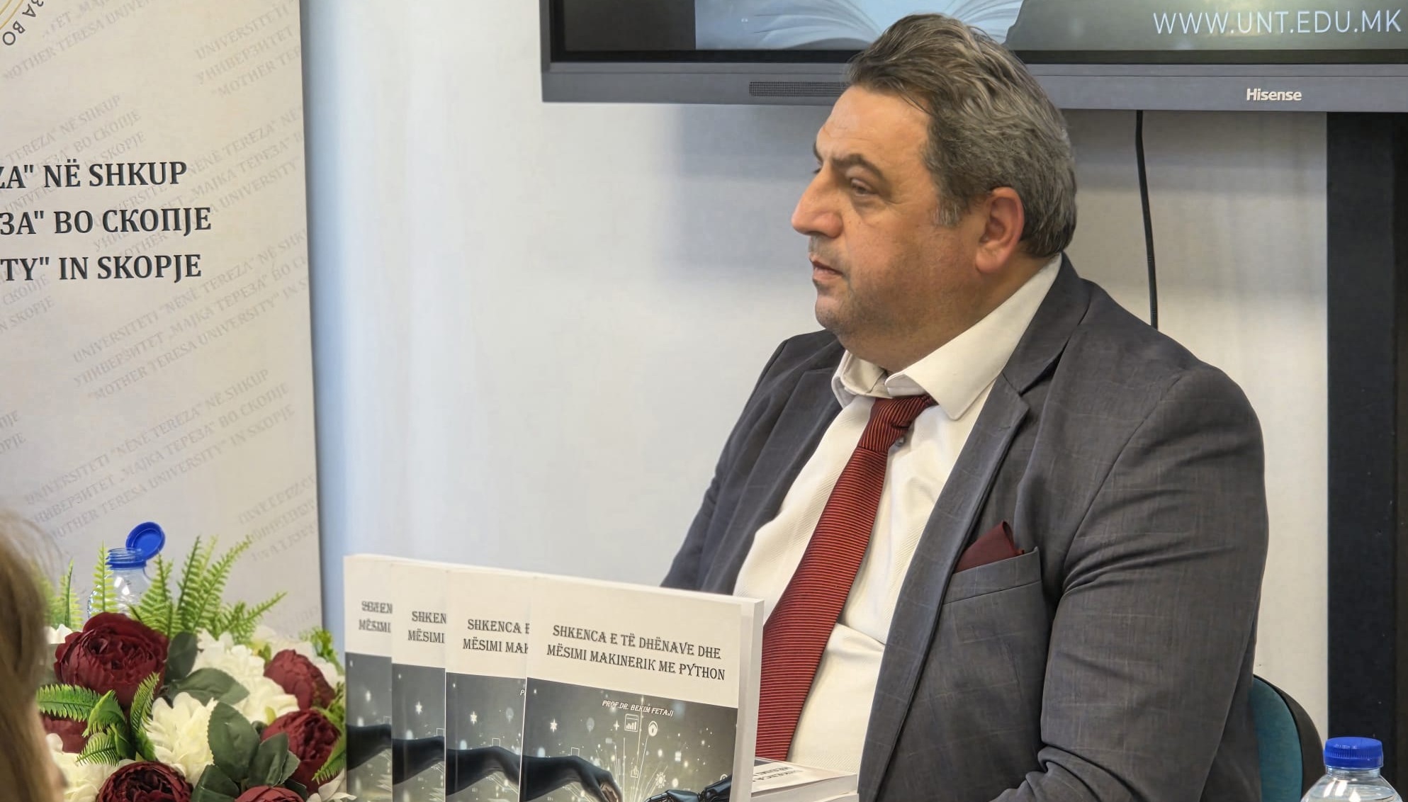 Shkup, 07.04.2026 – Universiteti “Nënë Tereza” në Shkup shënoi sot një moment të rëndësishëm në veprimtarinë e tij botuese dhe kërkimore-shkencore, duke organizuar me sukses promovimin e librit më të ri të rektorit, Prof. Dr. Bekim Fetaji, me titull: “Shkencat e të dhënave dhe mësimi makinerik me programim në Python”. Ky promovim mblodhi një audiencë të gjerë akademikësh, studentësh dhe përfaqësuesish të institucioneve shtetërore, duke u shndërruar në një platformë diskutimi për të ardhmen e teknologjisë dhe nevojën emergjente për literaturë profesionale në gjuhën shqipe brenda sferës së Inteligjencës Artificiale.