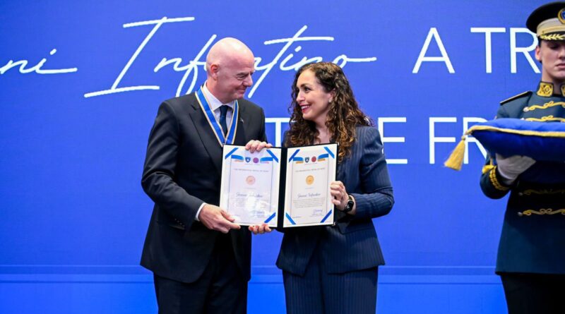 Presidenti i FIFA-s, Gianni Infantino, është dekoruar nga presidentja e Kosovës, Vjosa Osmani. Në një ceremoni të organizuar të mërkurën